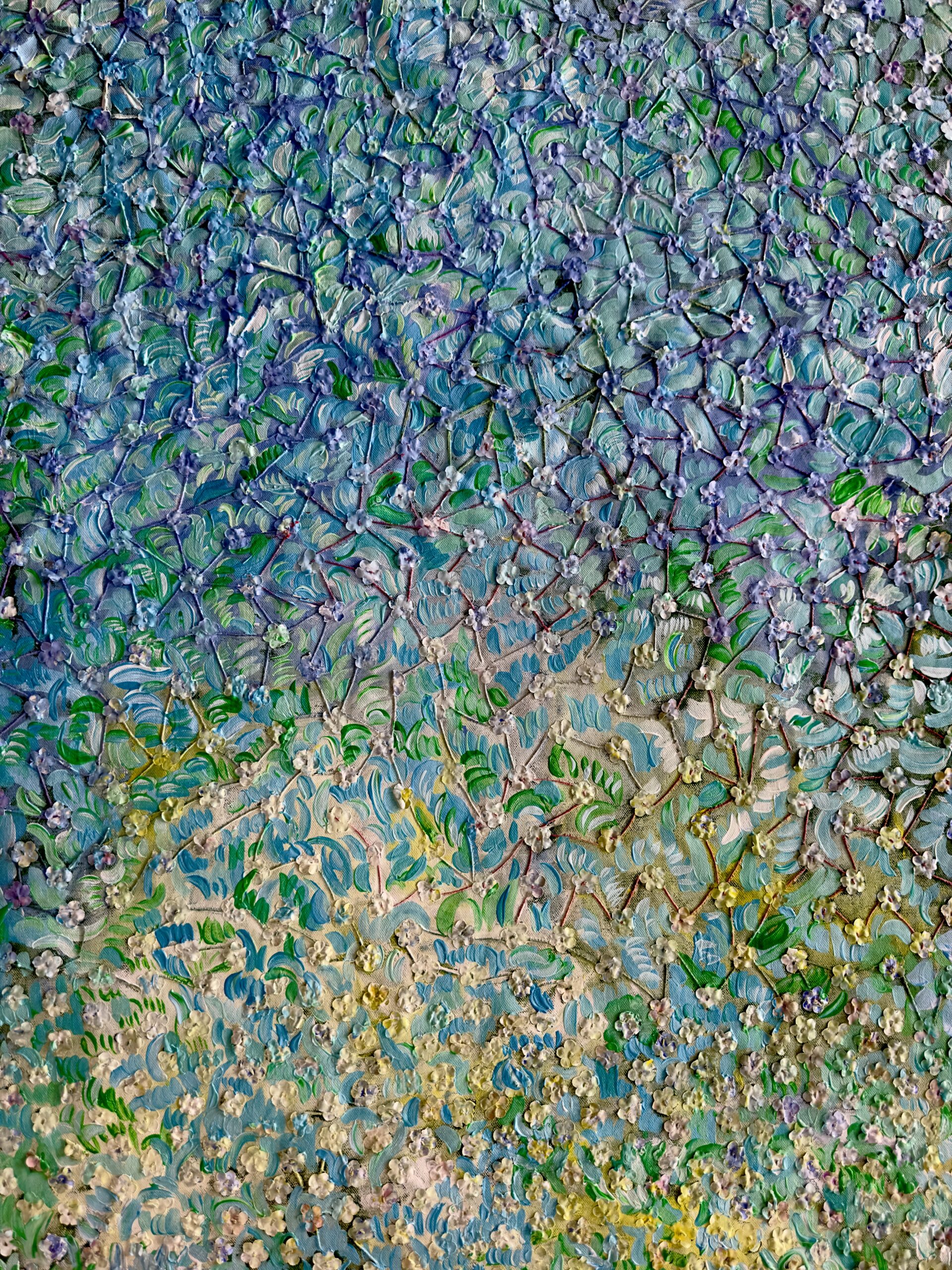 Acrílico, óleo, hilo y seda sobre lienzo